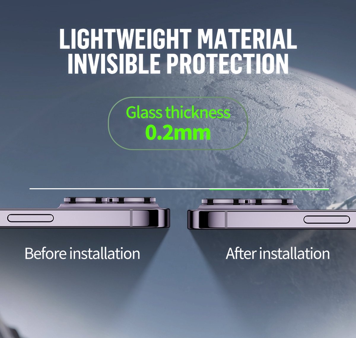 - Eenvoudige Installatie: Snelle en luchtbelvrije bevestiging, zonder gedoe. De lensbeschermer is stevig en eenvoudig te installeren.