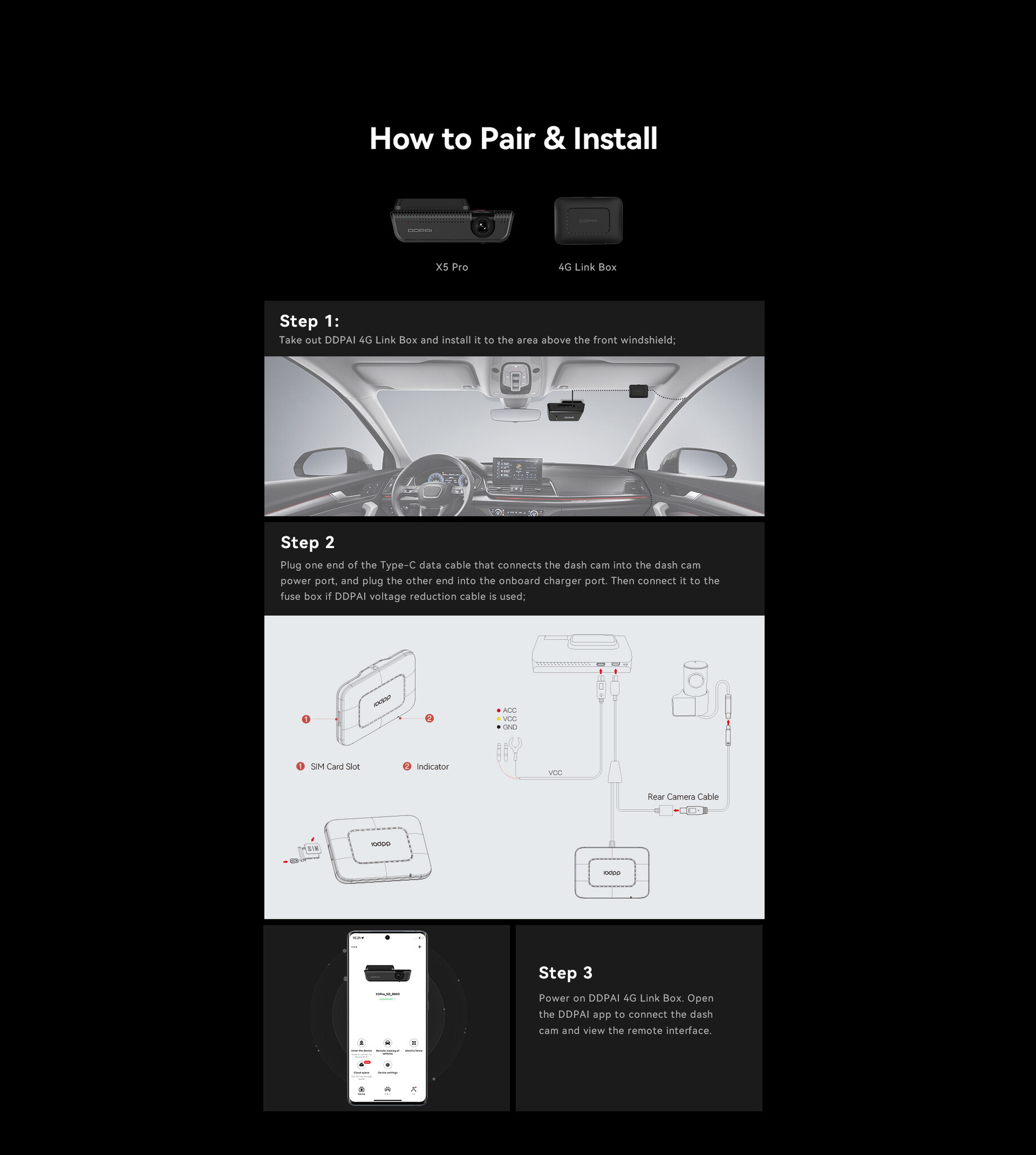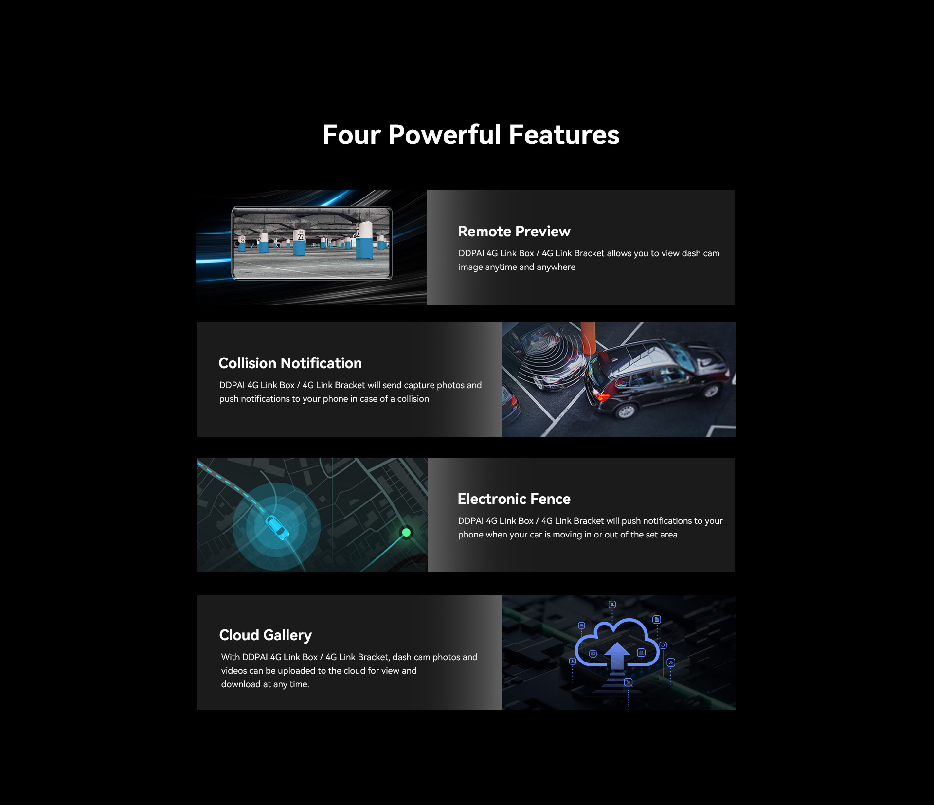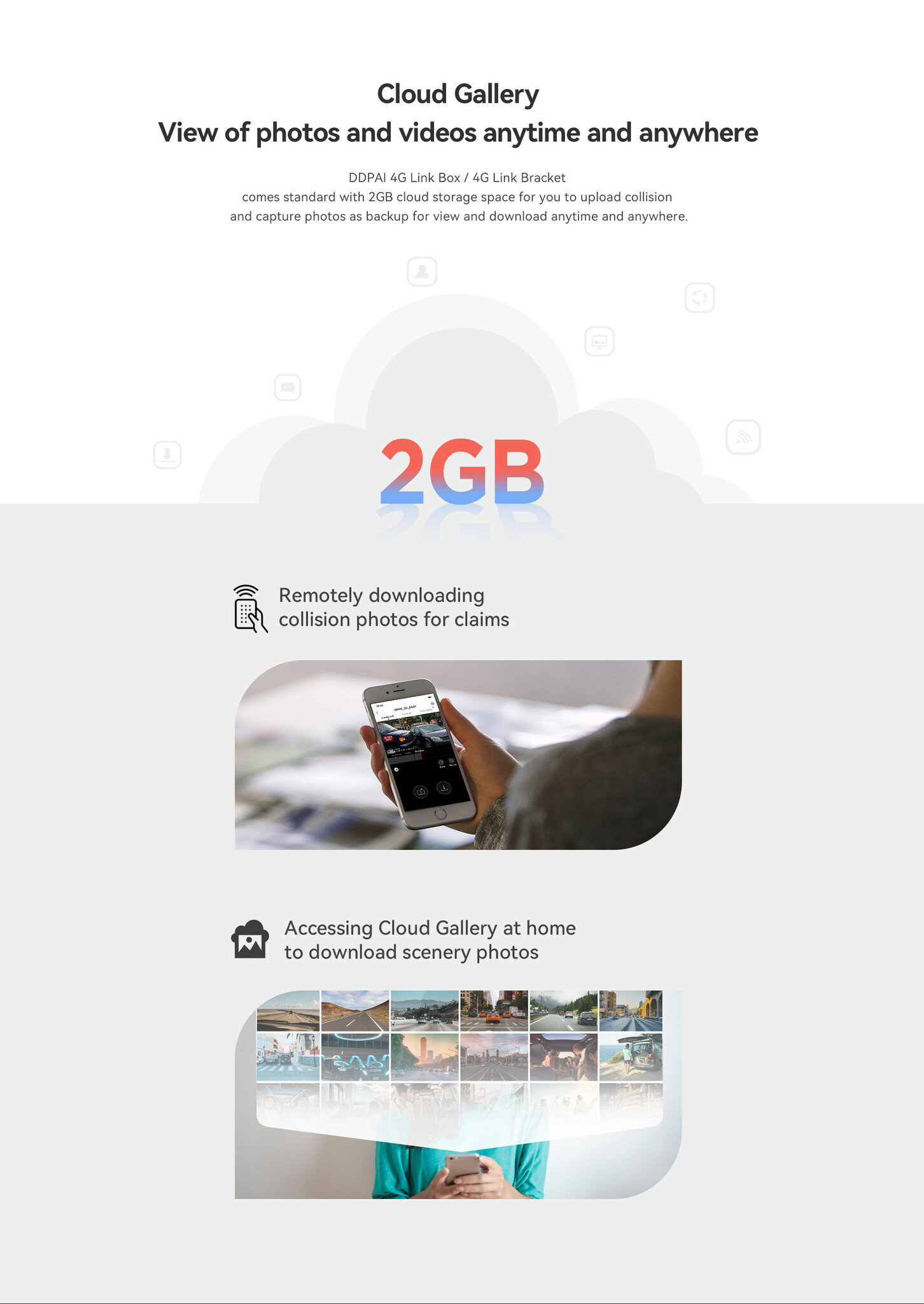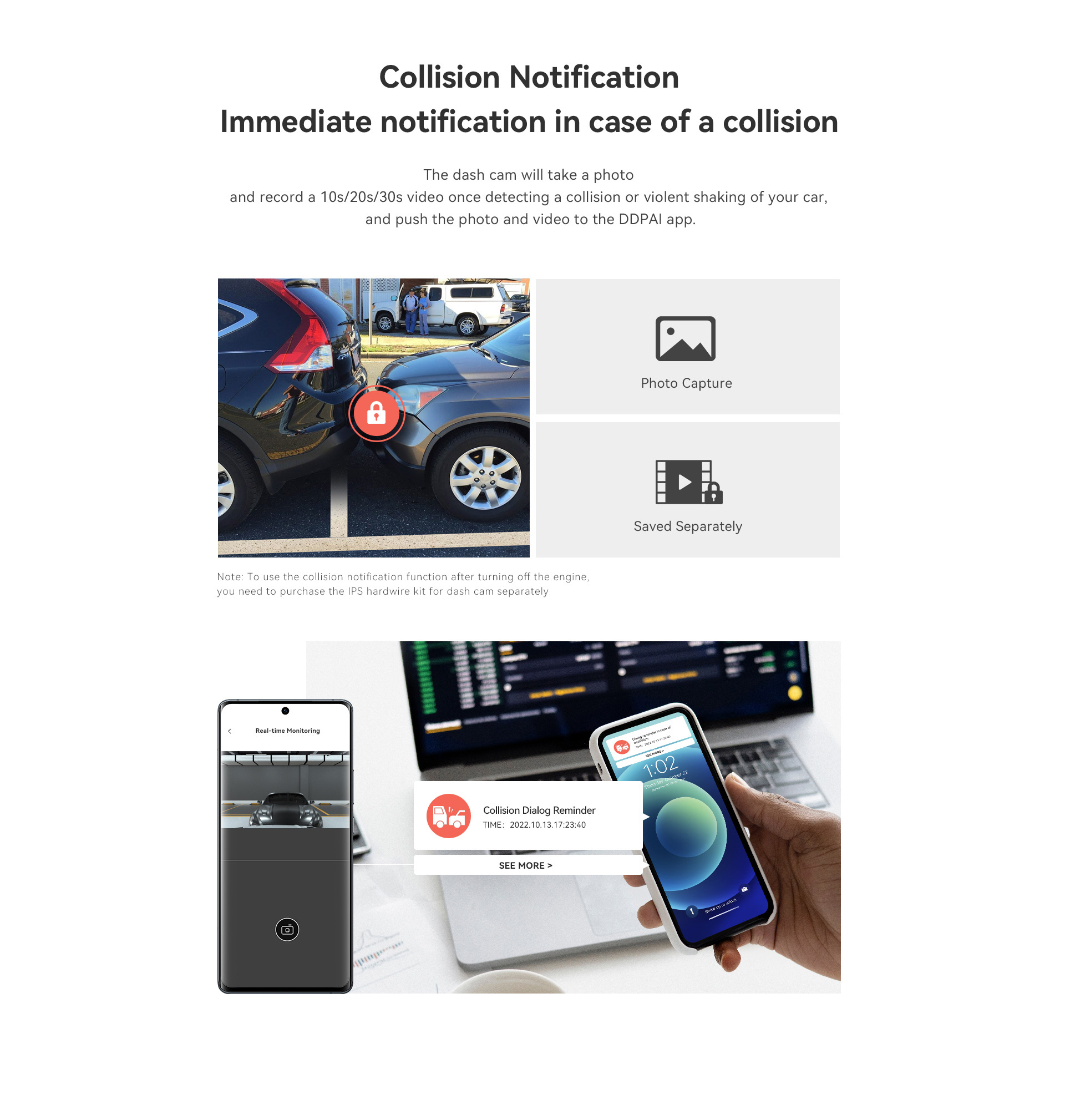 Met deze geavanceerde dashcam houd je altijd en overal zicht op je auto. Of je nu onderweg bent of je auto geparkeerd staat – dankzij real-time monitoring, cloudopslag en slimme meldingen ben je altijd op de hoogte van wat er rondom jouw voertuig gebeurt. Verbind eenvoudig via de DDPAI-app en ervaar ultieme gemoedsrust.