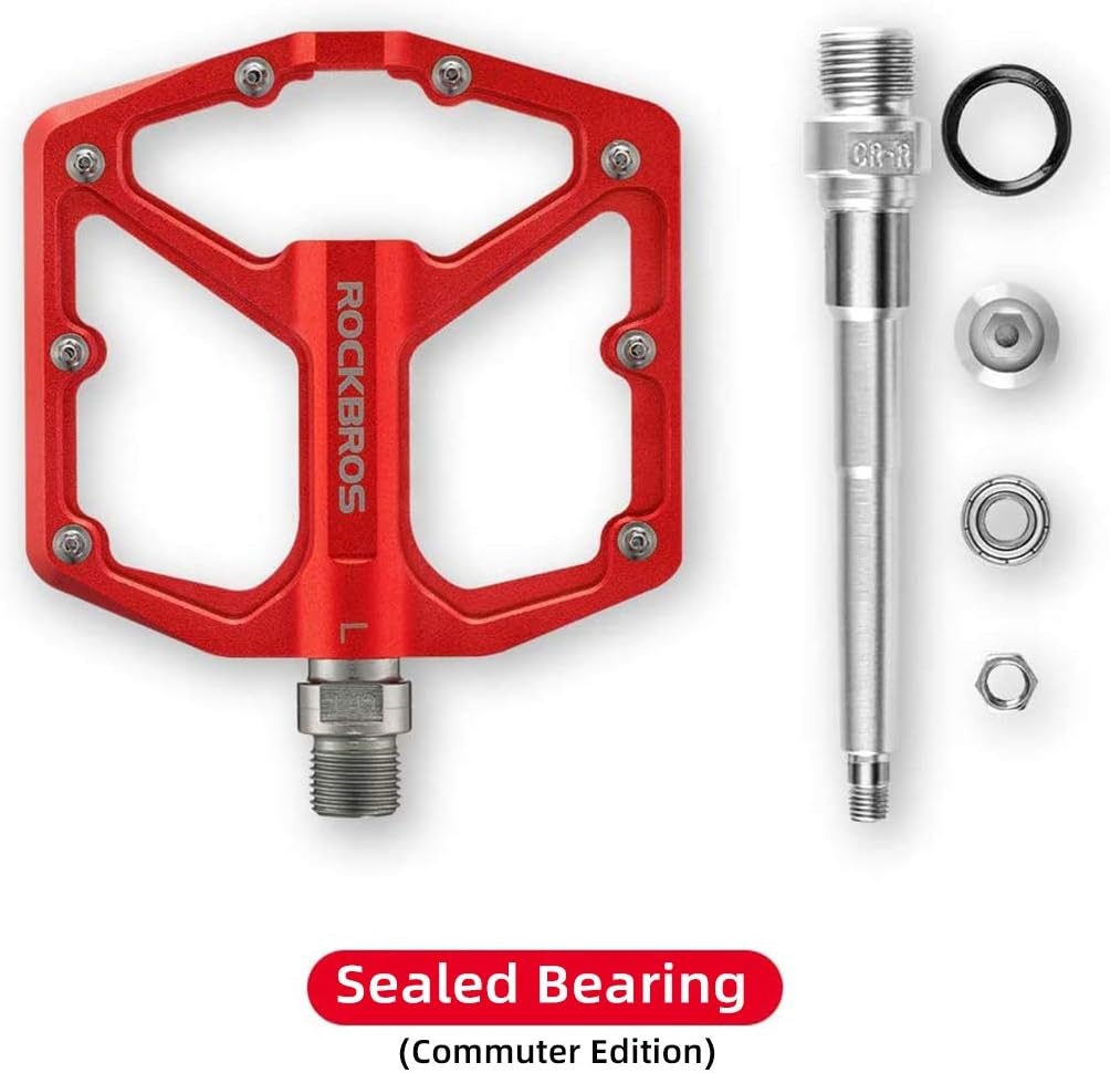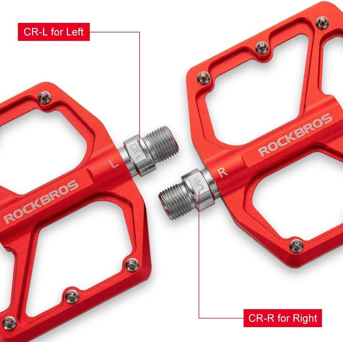 ROCKBROS Racing Bicycle Pedals - Aluminum - Ultralight Anti-slip Pedals 9/16 Inch for MTB e-bike City Bike - Red