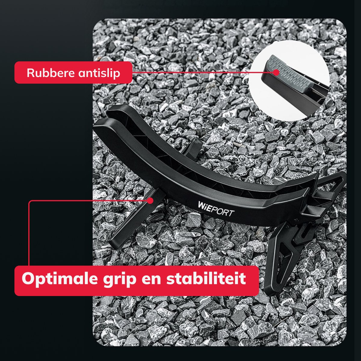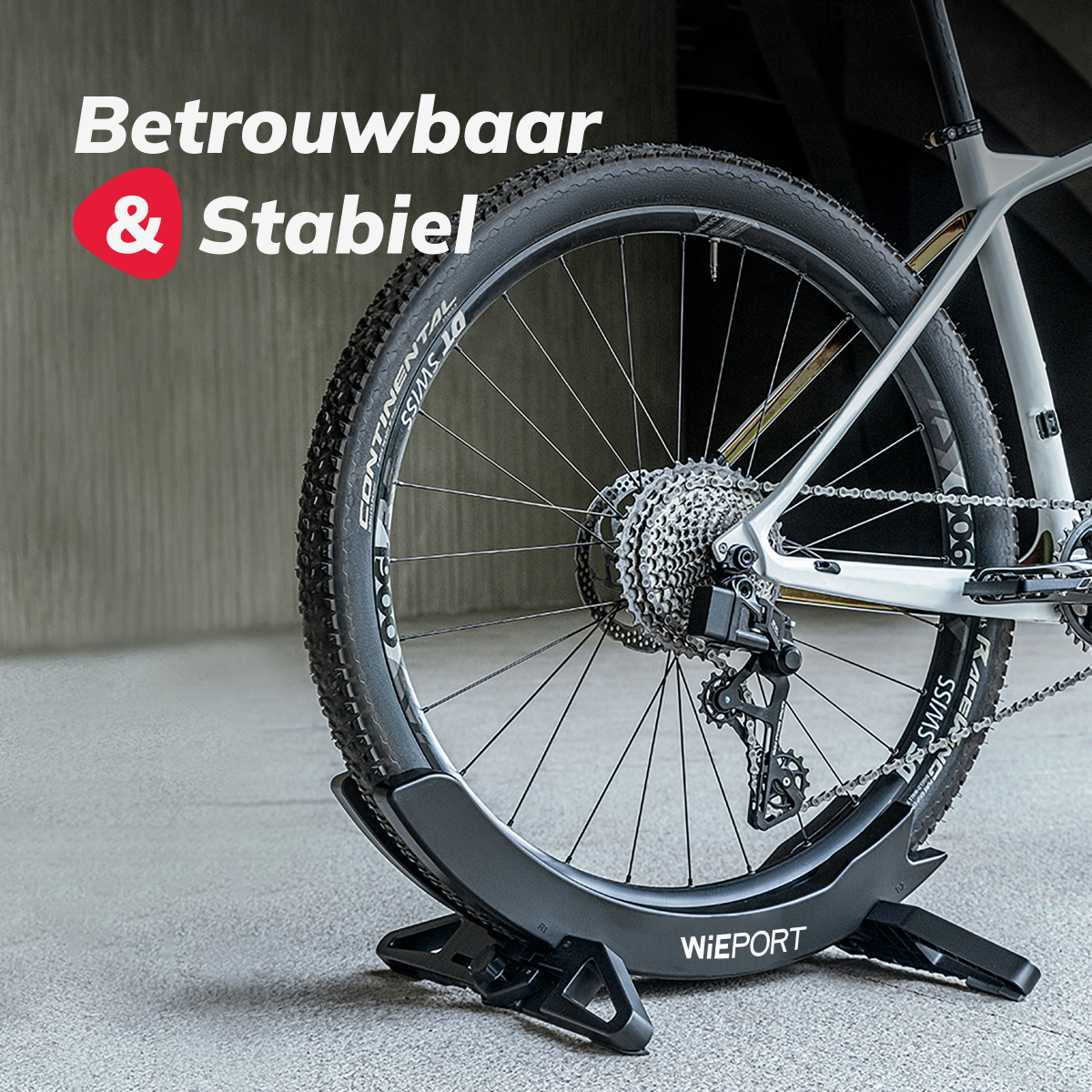 Note: Not suitable for electric bicycles! Are you looking for a robust and reliable stand to store your bike neatly and safely? The Wieport floor stand is the perfect choice. Thanks to its adjustable design and sturdy wheel grip, your bike will always stay stable and upright. Ideal for mountain bikes and road bikes and built to withstand intensive daily use. Stable & Safe – enclosing design keeps your bike upright Keep your bike always stable, neat, and protected – choose the Wieport adjustable bike floor stand!