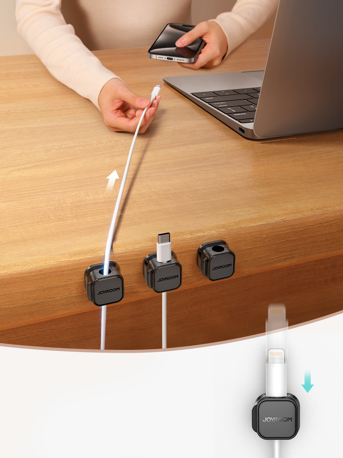 Joyroom - Magnetische kabel organiser - Zelfklevend met Magnetische sluiting - Kabel Management - Kabel organizer - kabel organiser bureau - Kabelclips zelfklevend - 3 Stuks - Zwart
