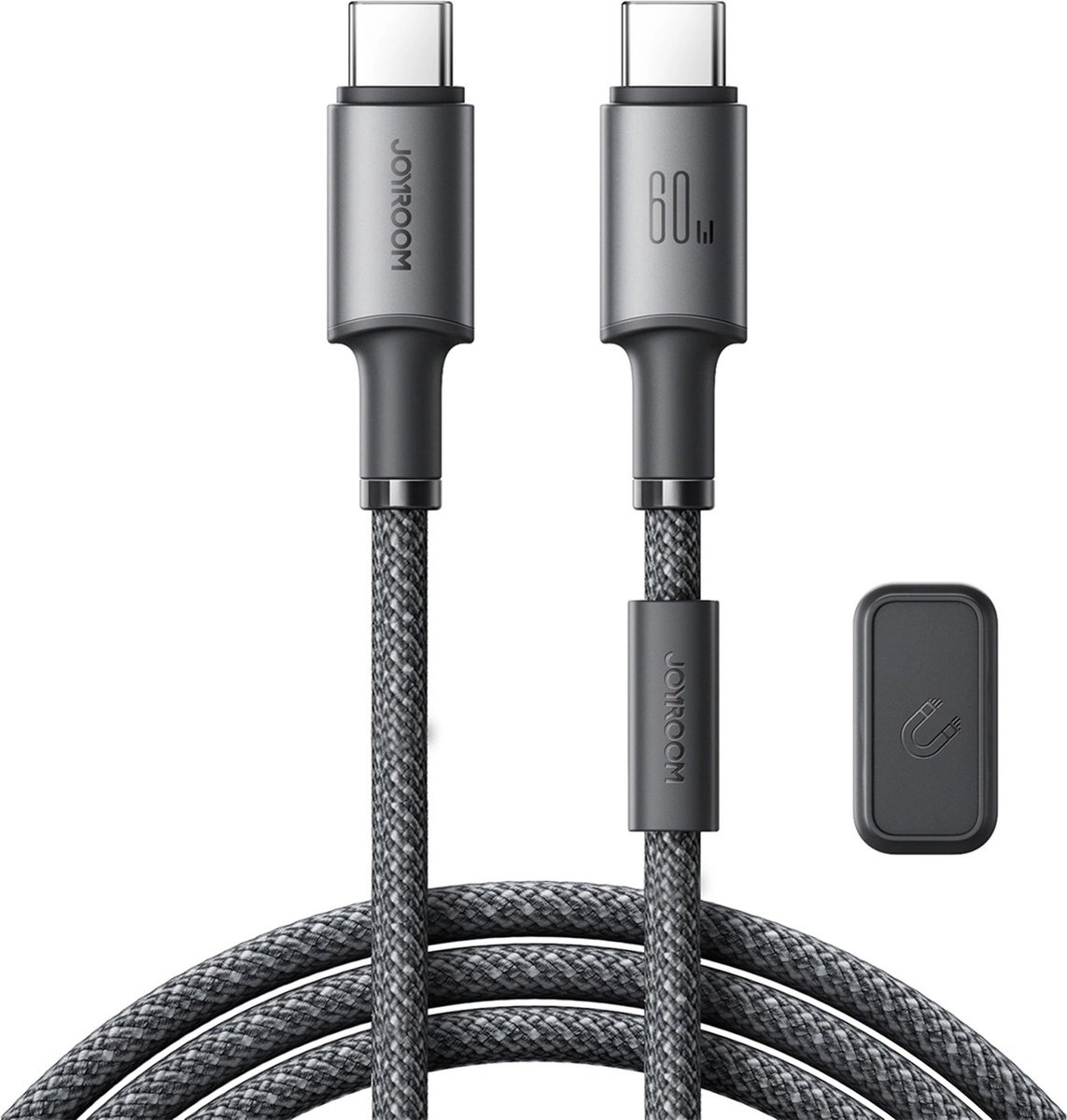 Joyroom - Universele Kabel - USB-C Naar USB-C Kabel - Met Magnetische Organizer - 1.2 Meter - 60W - Grijs