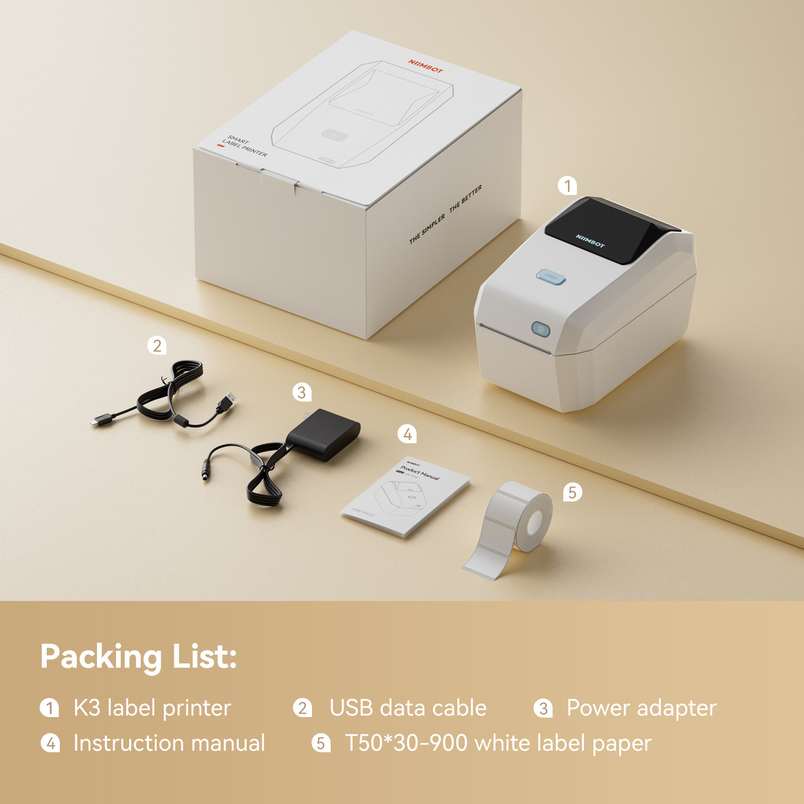 Niimbot K3 - Labelprinter - Labelmaker - Ivoor Wit - Bluetooth - Direct Thermisch- Print Breedte 20-80mm