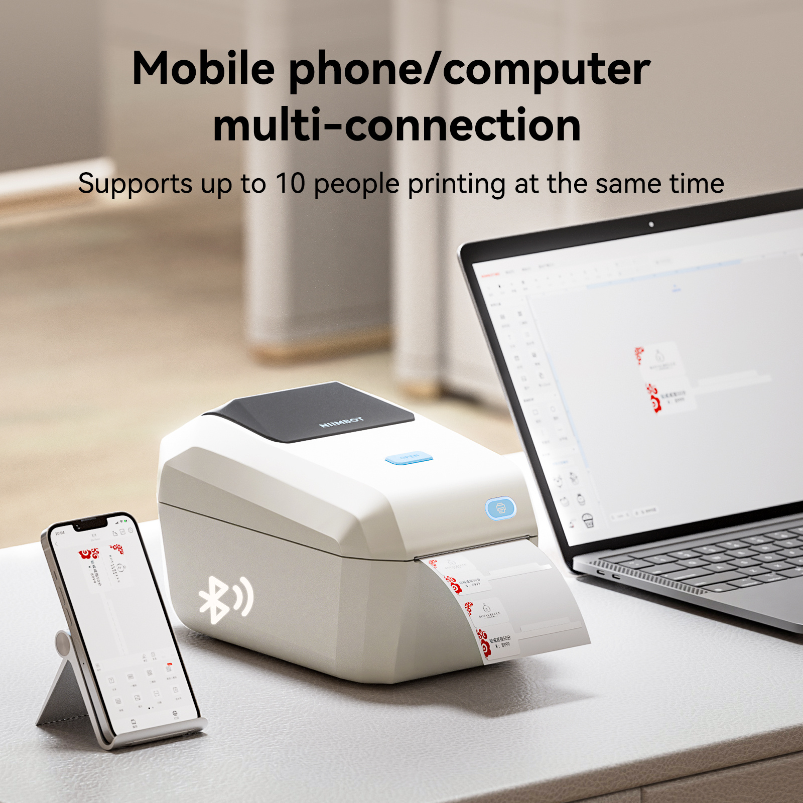 De Bluetooth-verbinding van deze labelprinter ondersteunt Android/iOS-systemen. Bovendien ondersteunt deze adreslabelprinter ook een USB-kabelverbinding voor pc, moet u het stuurprogramma en de NIIMBOT-desktop-APP downloaden van de officiële website van het NIIMBOT-merk. Let op: alle Bluetooth moet worden aangesloten via de gratis NIIMBOT-bewerkingsapp. 【Ondersteunt alleen Windows System 7/10 Vesion voor pc-gebruikers】 Niet compatibel met Pad, niet aanbevolen voor gebruik met Pad.