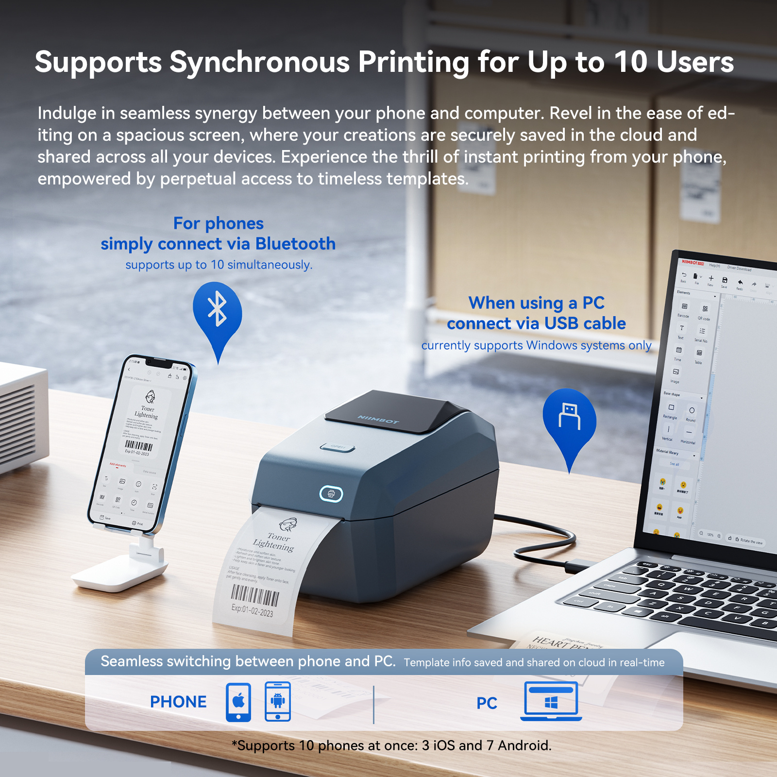 De Bluetooth-verbinding van deze labelprinter ondersteunt Android/iOS-systemen. Bovendien ondersteunt deze adreslabelprinter ook een USB-kabelverbinding voor pc, moet u het stuurprogramma en de NIIMBOT-desktop-APP downloaden van de officiële website van het NIIMBOT-merk. Let op: alle Bluetooth moet worden aangesloten via de gratis NIIMBOT-bewerkingsapp. 【Ondersteunt alleen Windows System 7/10 Vesion voor pc-gebruikers】 Niet compatibel met Pad, niet aanbevolen voor gebruik met Pad.