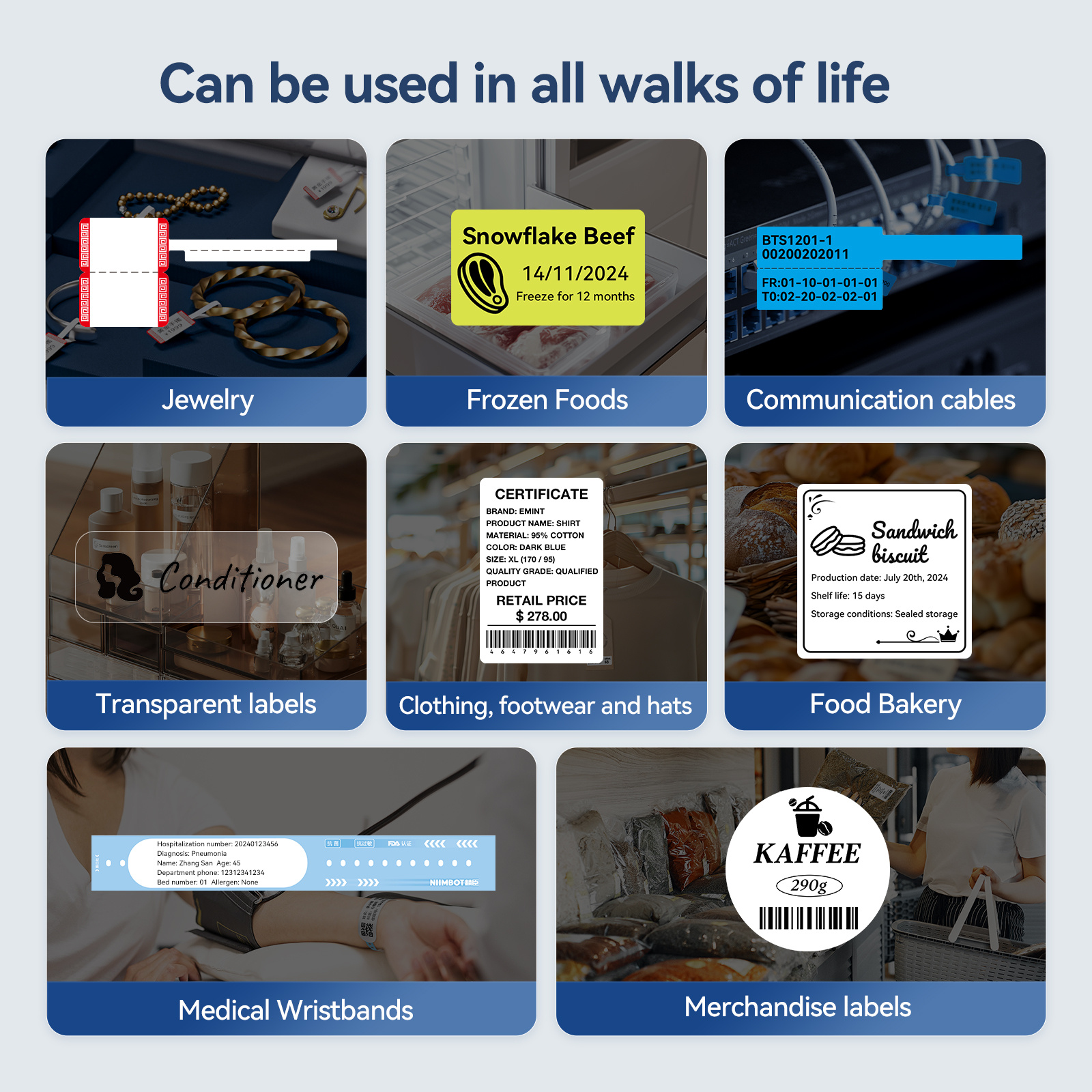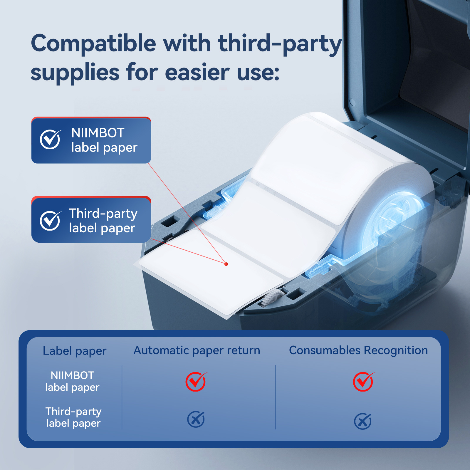 Met deze desktop NIIMBOT k3-labelprinter kunt u thermisch papier van elk verkrijgbaar merk gebruiken (alleen voor een geschikte maat 1-2 inch labelbreedte). Bespaar geld, vooral als u etiketten in bulk afdrukt. Het is tijd om afscheid te nemen van het dure eigen etiketpapier en een nieuwe, betaalbare optie te bieden. Dankzij het grotere ontwerp van de papierbak ondersteunt het niet alleen rolpapier dat erin is geplaatst, maar ook opvouwbaar thermisch etiketpapier. (Waarschuwing ondersteunt alleen labelbreedte 3,14 inch, niet voor 4''*6'' verzendlabel)
