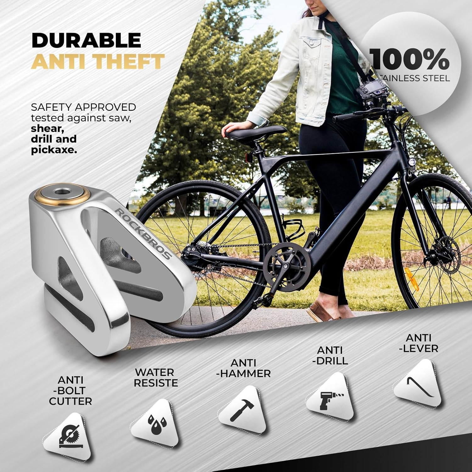 Waarom kiezen voor ROCKBROS? Met innovatieve technologieën zoals een roterend anti-boorelement en een versterkte constructie, biedt dit slot de ultieme bescherming tegen diefstal. Perfect voor dagelijks gebruik of lange fietstochten!