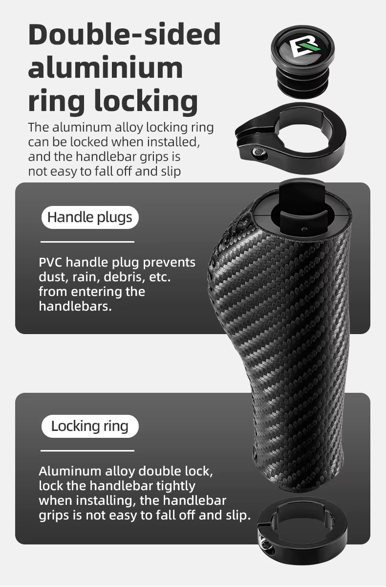 ROCKBROS Fietshandvatten - Universele stuur grips - Comfortabele mountainbike handvatten voor racefiets, stadsfiets en MTB - Carbon - Zwart