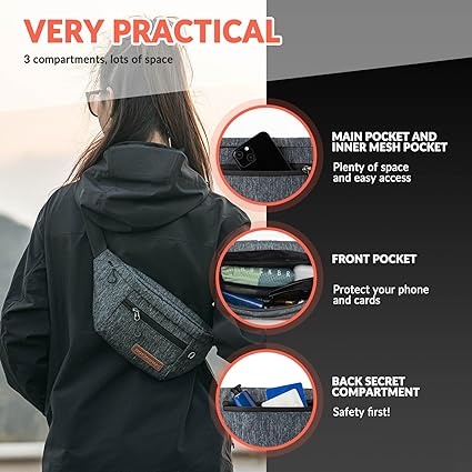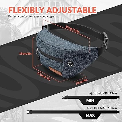 De verstelbare schouderriem (19-130 cm) past zich naadloos aan jouw lichaam aan. Schakel moeiteloos tussen heuptas en slanke schoudertas!