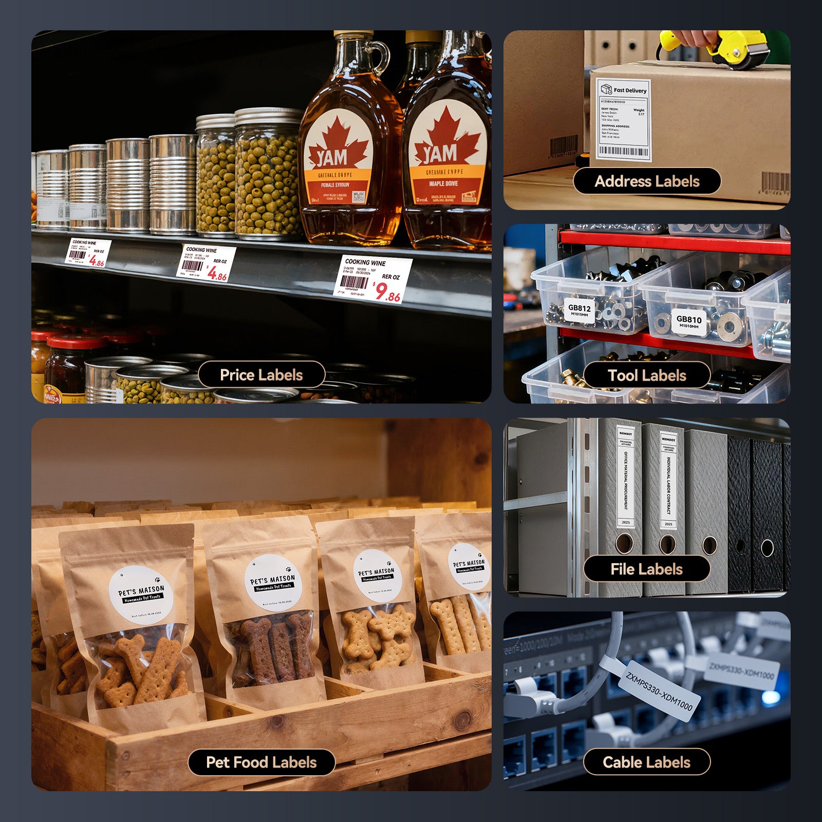 Thanks to the printing width support. You can use the label widths, designs, shapes and colors you want and print various kinds of labels.