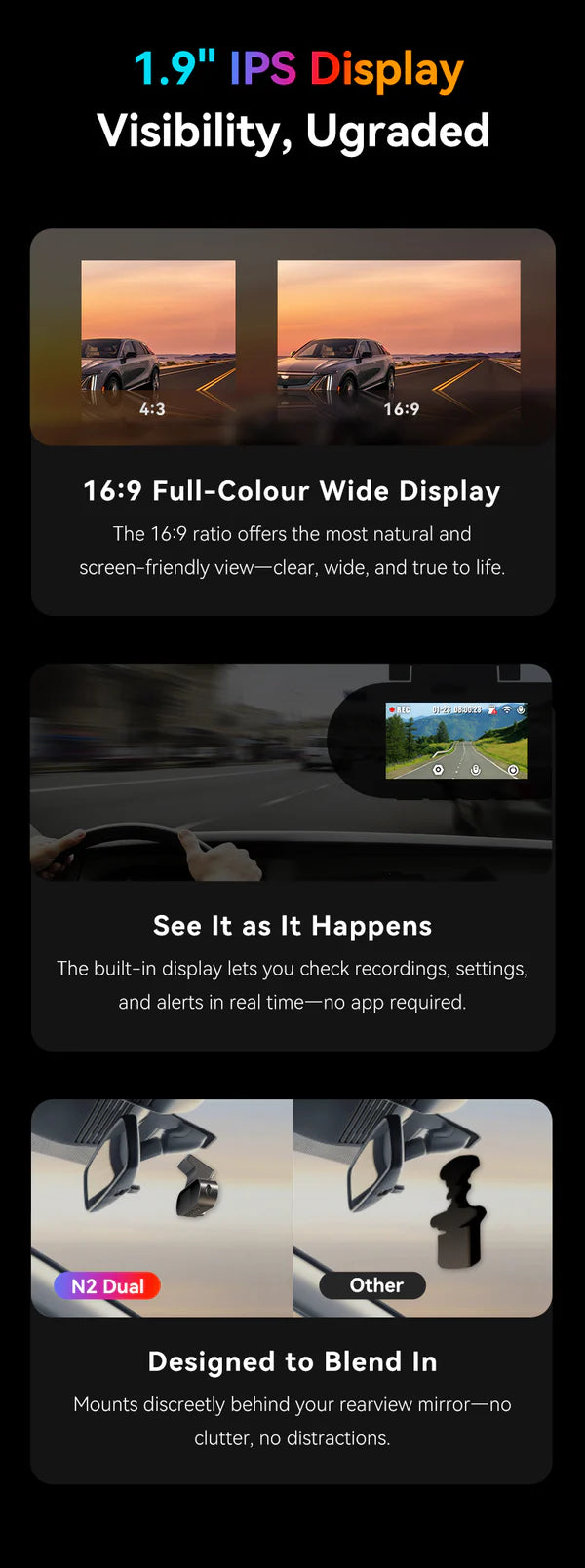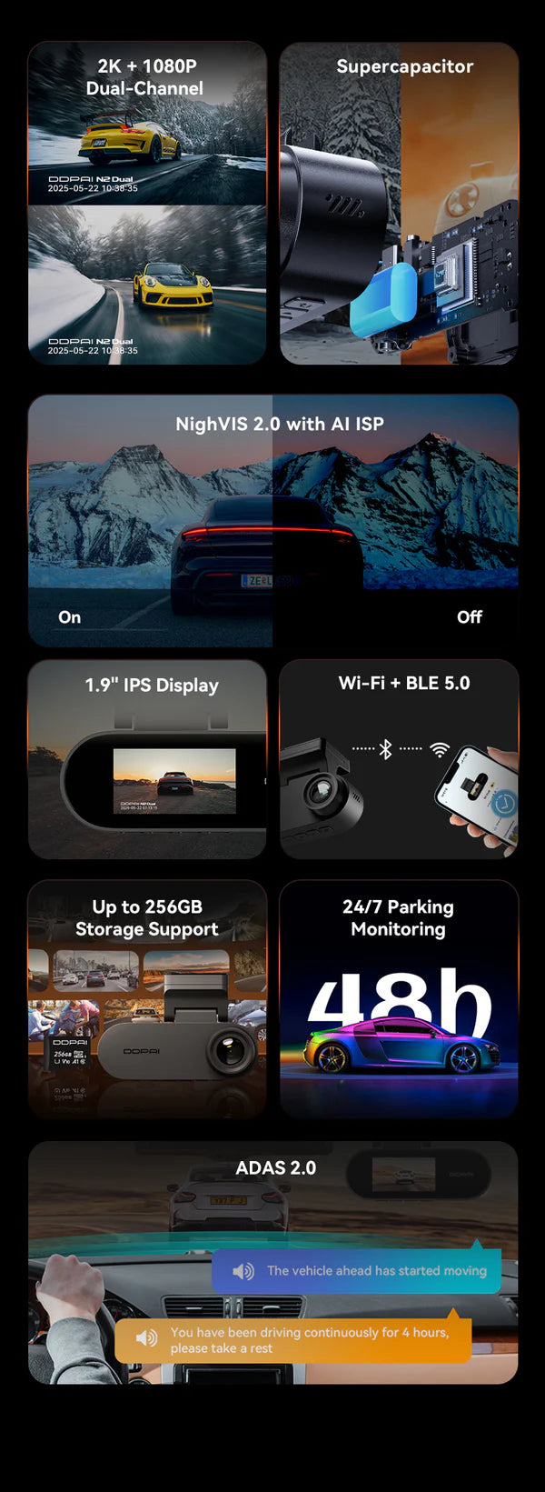- 2K+1080P Dual-Channel, Gave You Complete Coverage with Every Drive