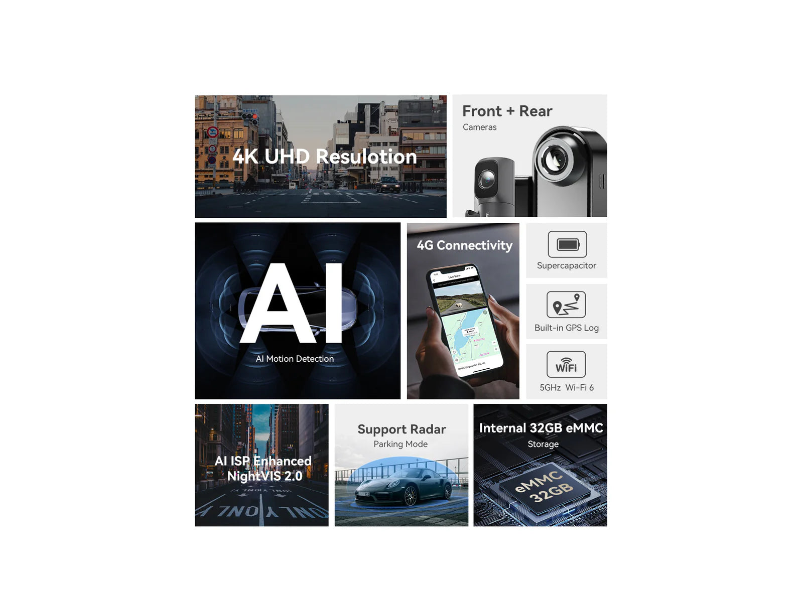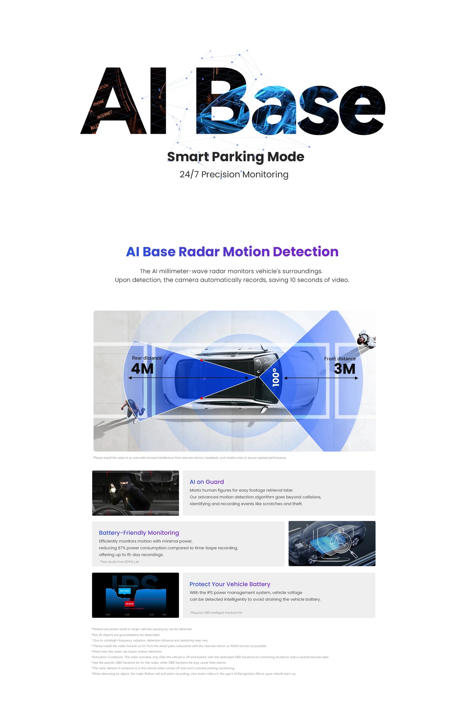 - AI Base Radar Motion Detection: 24/7 Smart Parking Mode
