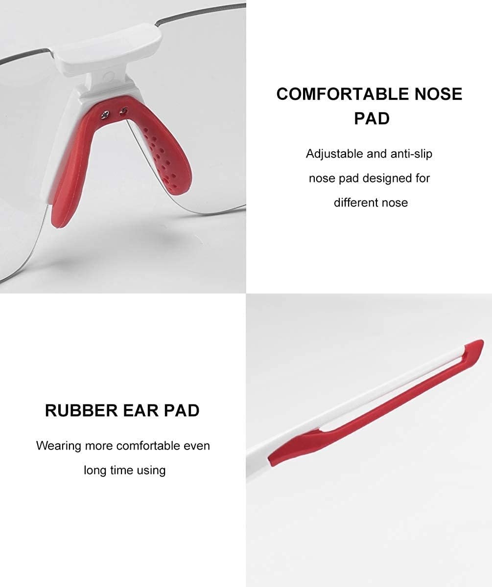 Rockbros Fietsbril - UV400 Bescherming Fietszonnebril - Sportbril Dames Heren - Transprante Meekleurend - Wit Rood