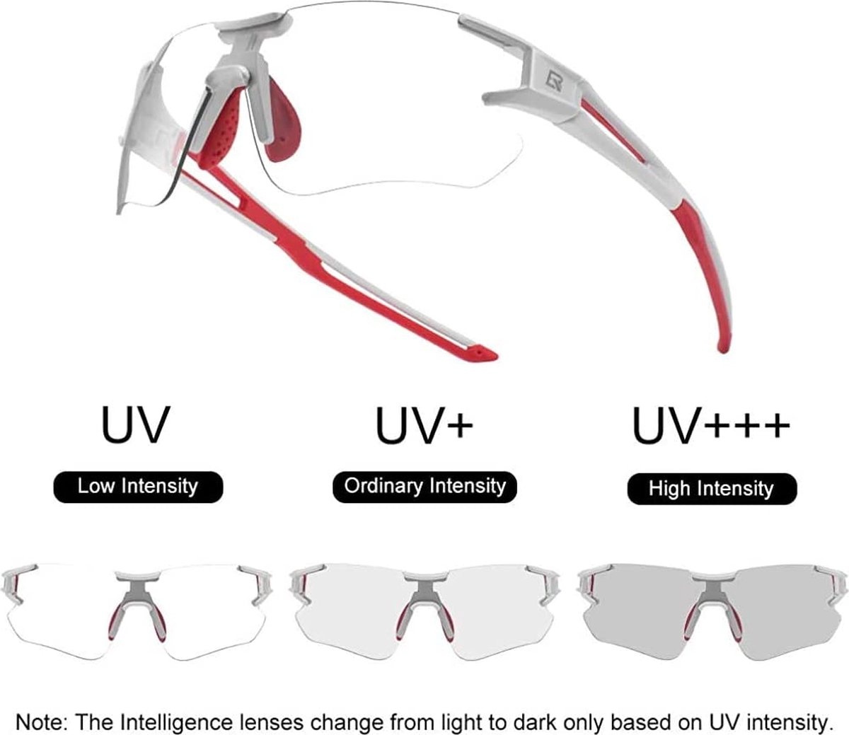 - FOTOCHROMISCHE TECHNOLOGIE: De lenzen van ROCKBROS meekleurende zonnebrillen worden automatisch lichter of donkerder wanneer de lichtomstandigheden veranderen. U hoeft bij ander weer niet van bril te wisselen