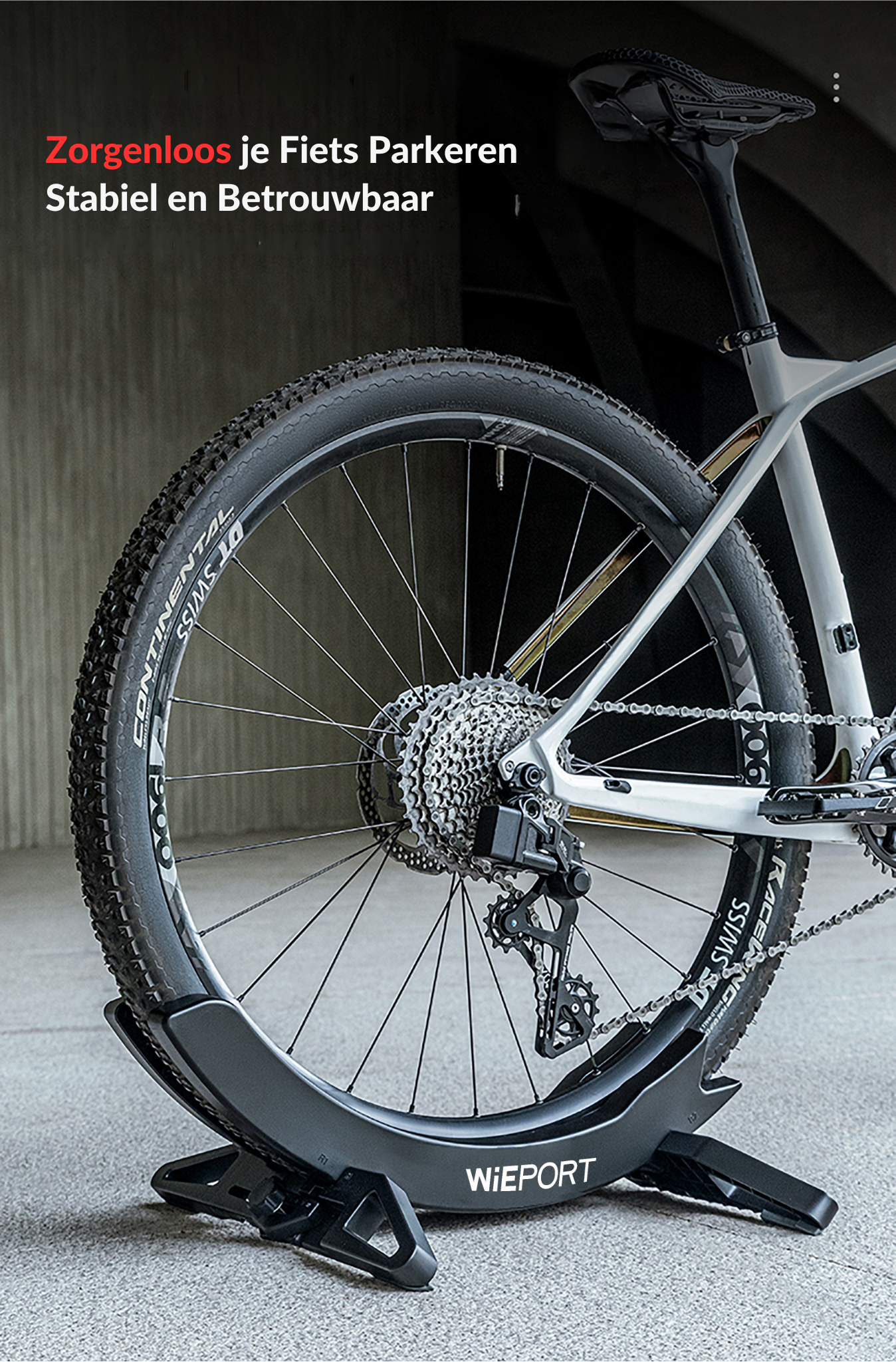 Wieport - Fiets Parkeerstandaard - Verstelbaar - Universeel - Geschikt voor 30-80 mm Banden - voor Binnen en Buiten - Zwart